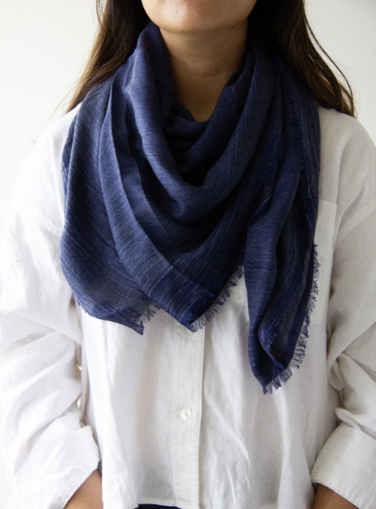 La pashmina de Cashmere y Bamboo Silk de Kambalina esta confeccionada 50% cashmere / 50% seda de bamboo. Combina la calidez y suavidad del cashmere con el brillo sedoso y la ligereza de la seda de bamboo, ofreciendo un acabado lujoso y un tacto excepcional. Gracias a su composicion es ideal para usarla todo el año. Usala como pashmina, estola o chal ligero.