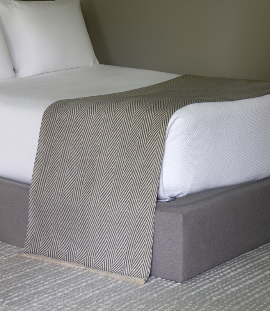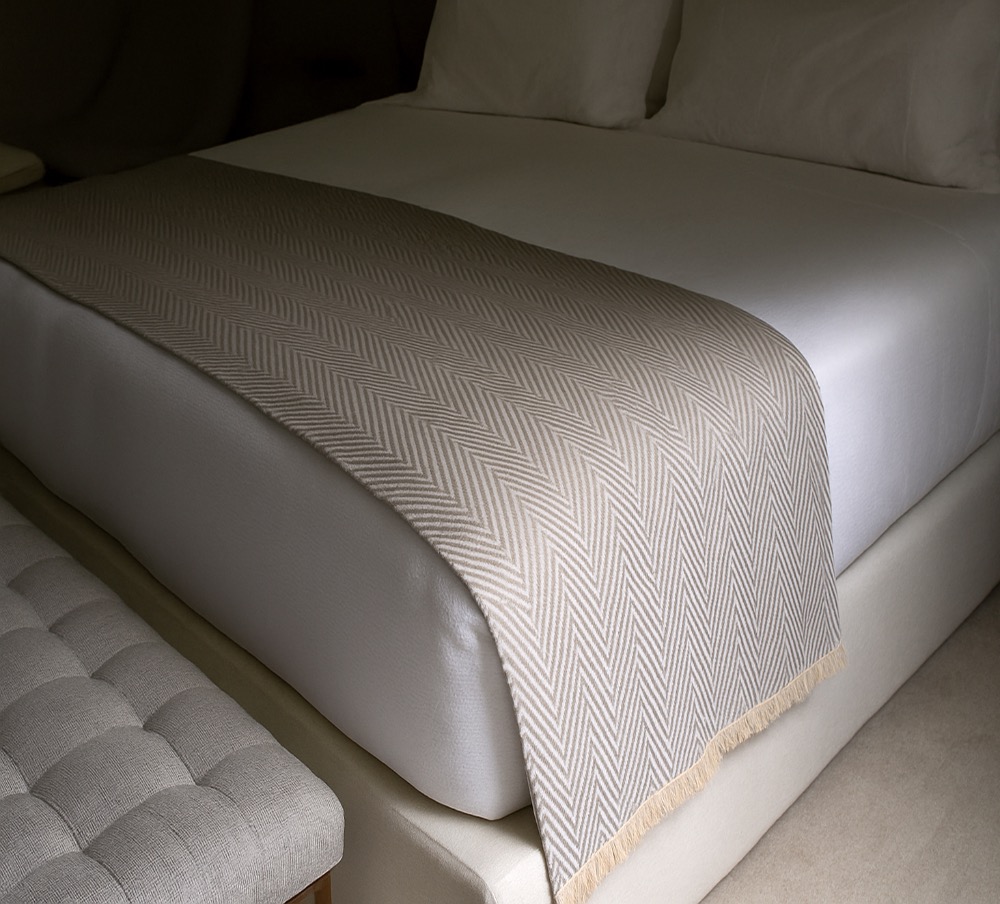 La manta Fishbone tronco —tiene un diseño de espiga facil de integrar con cualquier decoracion.