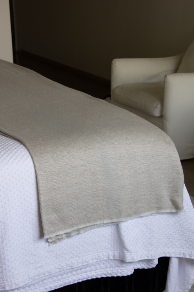 La manta Fishbone de Kambalina le dara un toque elegante y lujoso a tu cama king o queen. Su fino diseño lo veras al acercarte, aunque de lejos paresca una manta lisa. Esta confeccionada en 98% de cashmere y 2% de elastano, con unas medida de 240 cm x 270 cm, lo que te permitira ponerla al pie de tu cama o cubrir la cama con ella.