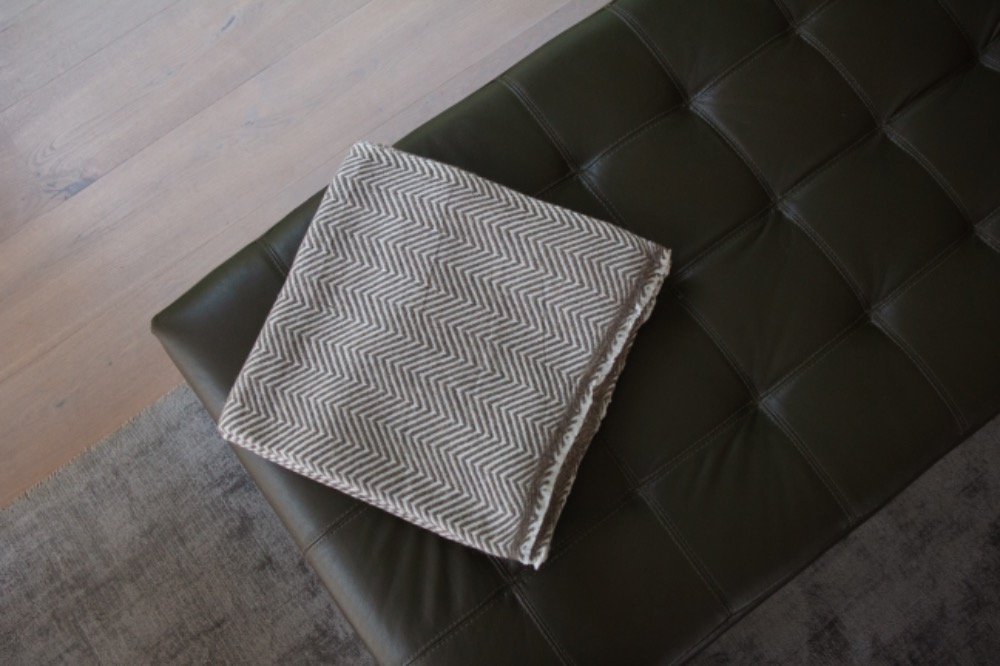 La manta Larrge Herringbone de Kambalina es perfecta para acurrucarte. Tejida en patrón espiga, su mezcla de 98% cachemira y 2% elastano la hace ultra suave, con una caída y elasticidad sutil que la vuelven comodísima. Mide 130 x 180 cm, un tamaño ideal para el sofá, la cama individual o decorar cualquier espacio. Cuidado Recomendado: Limpieza en seco